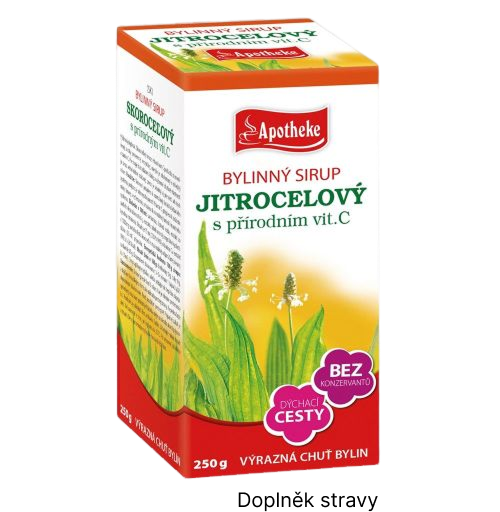 Plantago is a natural remedy that supports the normal functions of the respiratory and immune systems. Rosehip supports the body's natural defenses and acts as an antioxidant. The composition was approved by the Czech Pediatric Society, it is suitable for children from 1 year of age.