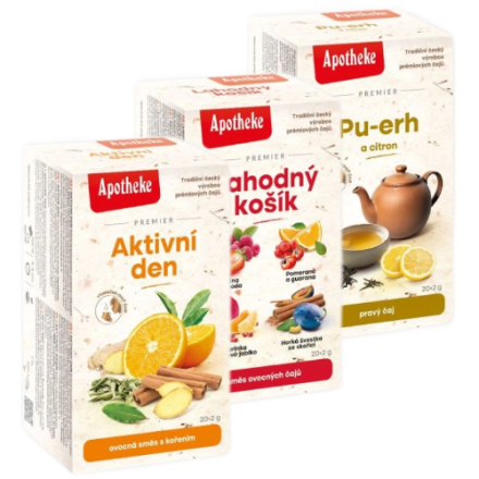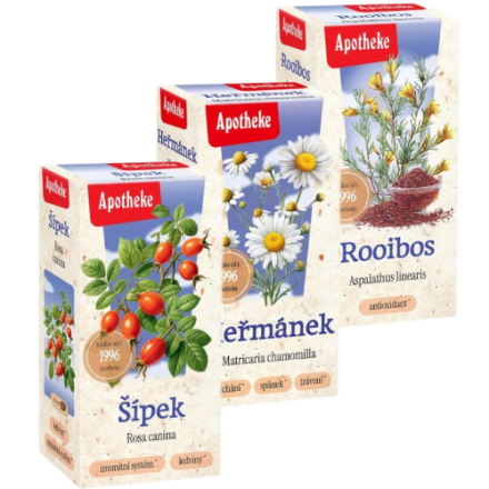 Apotheke is a Czech brand that focuses on producing herbal teas, tea blends, dietary supplements, and foods. The company places great emphasis on the quality and origin of its ingredients, offering a wide range of herbal and fruit teas, including popular fruit teas, herbal teas for children, and special tea blends. Apotheke also offers organic teas, ensuring options for various preferences. These teas are widely available in many pharmacies, health food stores, and online shops.